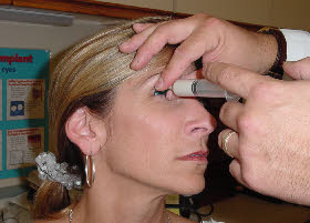 To obtain the exact dimensions of the socket we first select an impression tray that will fit between the lids and conform to the periphery of the socket.. This tray resembles a perforated half shell with an attached stem. We then gently instill alginate material (no needles) into and around the socket. Alginate cream is the consistency of pudding and most people tolerate the impression procedure without complaints of discomfort.